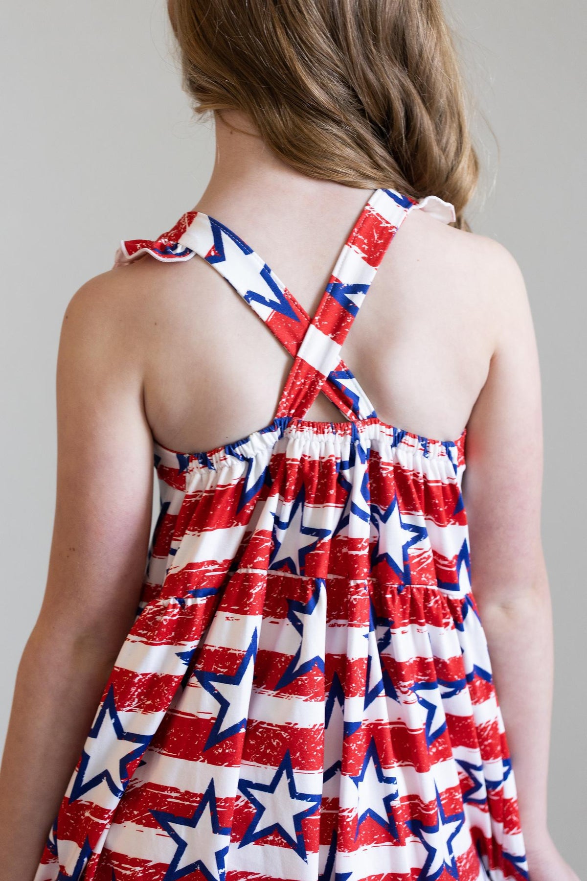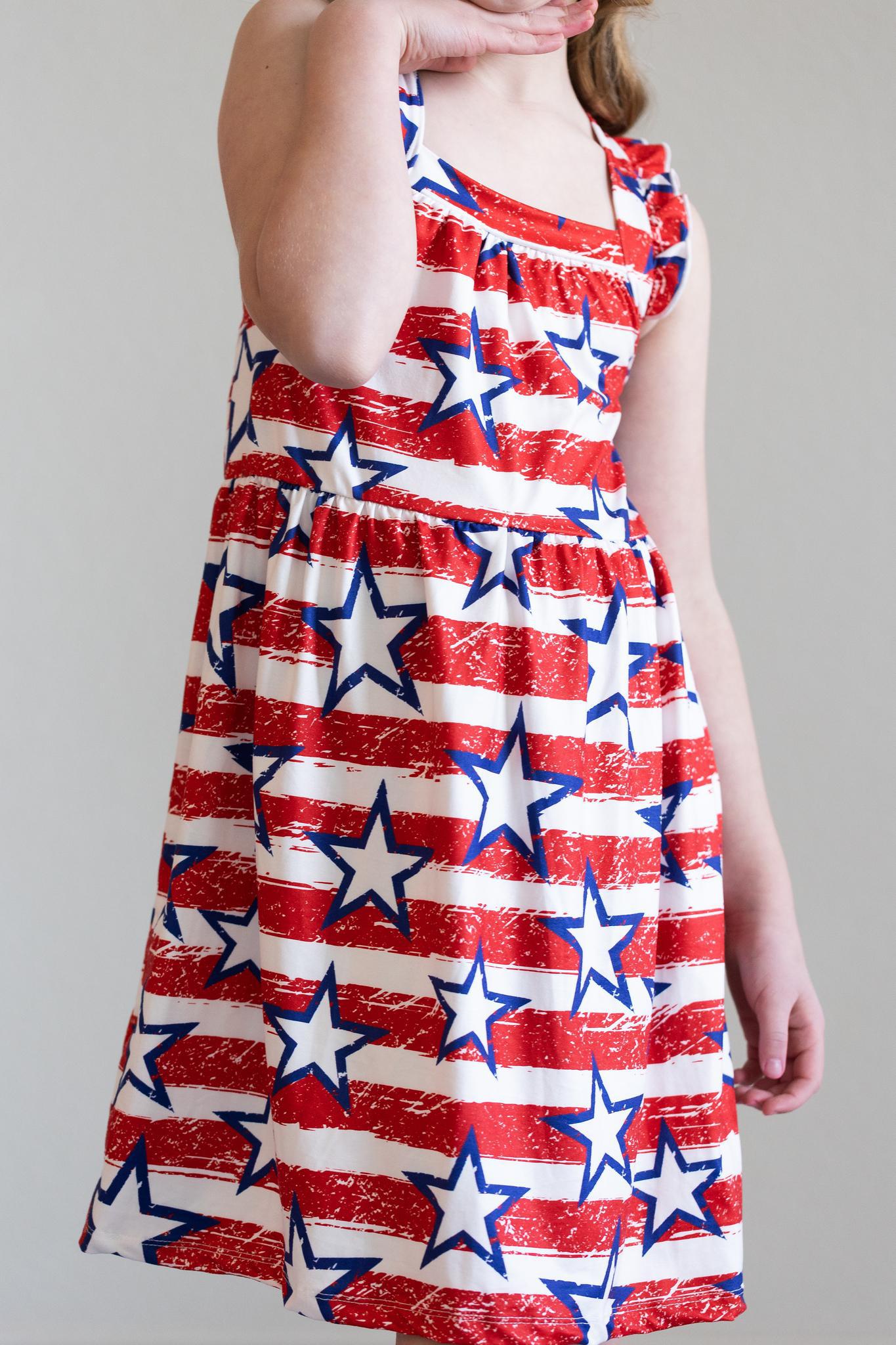 Stars & Stripes Ruffle Cross Back Dress