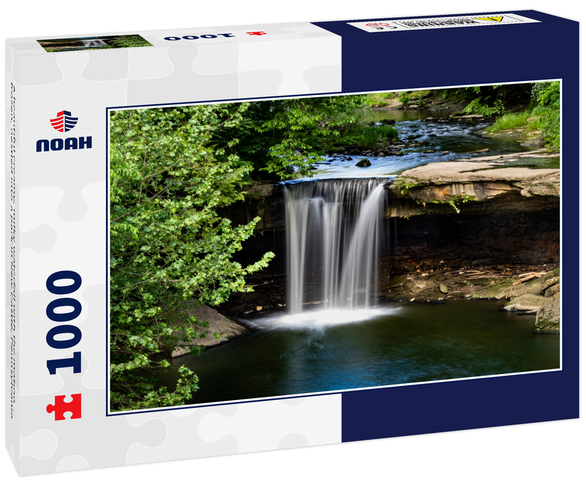 A beautiful creamy, milky waterfall with the motion frozen, nestled into a park in New Castle, Pennsylvania